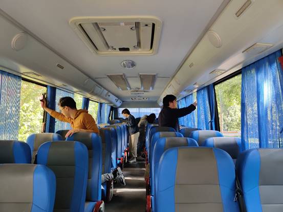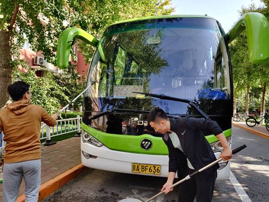 通勤校车作为连接 av影片直播 主校区与昌平校区的重要交通工具,是确保学校“一体两翼”建设方案顺利实行的重要设施,也为老师和博士新生的生活和学习提供了极大的便利。为响应中央“不忘初心,牢记使命”的号召,给广大同学和老师提供整洁舒适的乘车环境,同时提高支部党员同学的奉献意识和实践能力, av影片直播 19级博士党支部组织研究生党员同学来到班车停放点,帮助班车师傅清洁了班车的内部设施和车体玻璃。