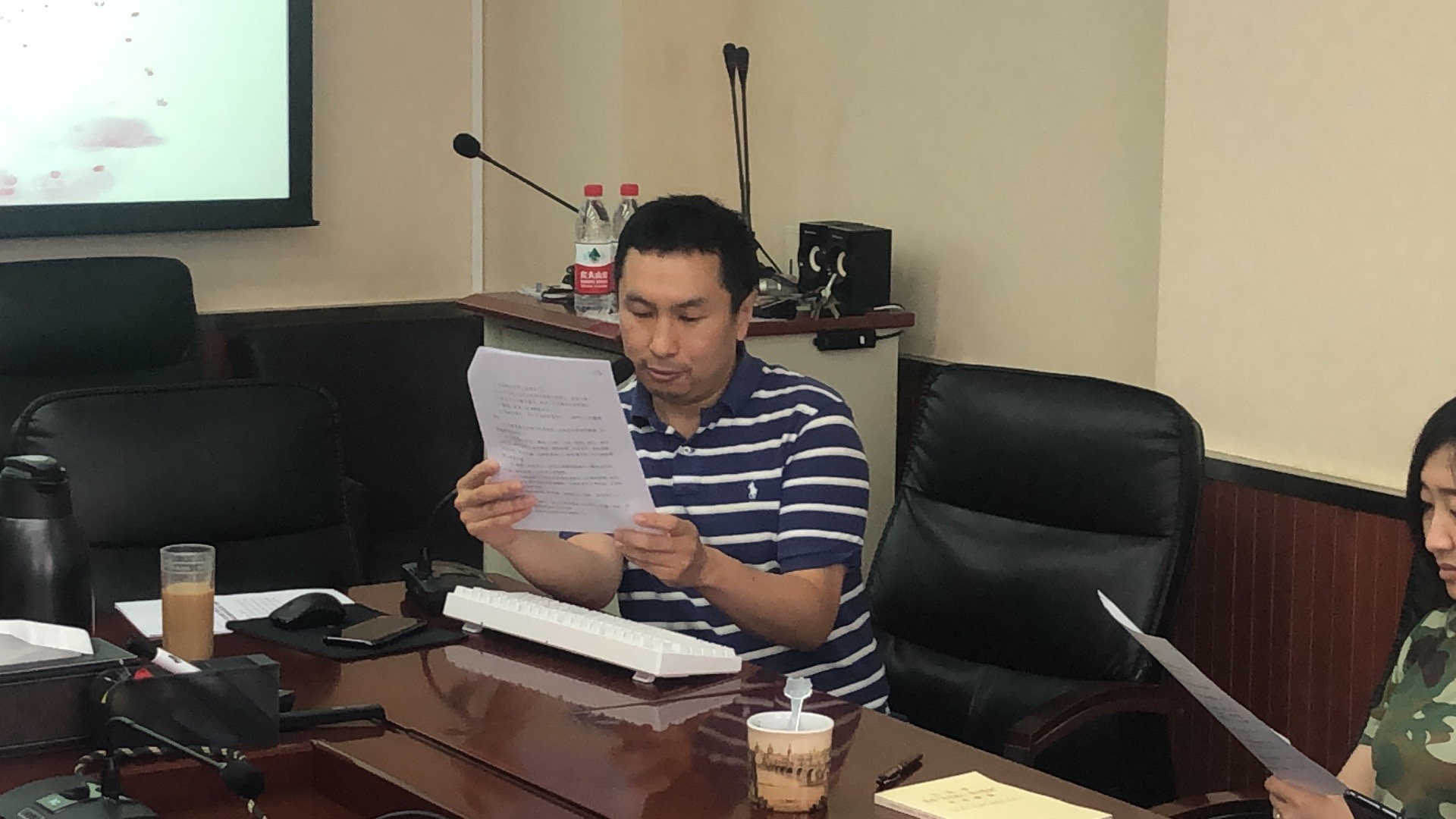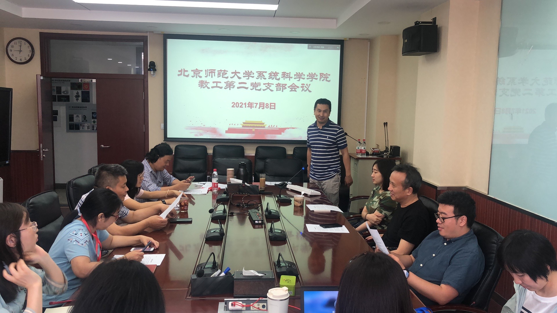 会议首先由支部书记李辉老师介绍了会议议程。随后,集体起立奏唱《国际歌》。