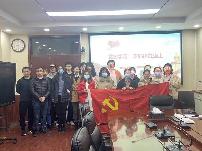 研究生第二党支部书记黄思羽在科技楼608主持召开了主题党日活动,主题是党史学习--支部建在连上。