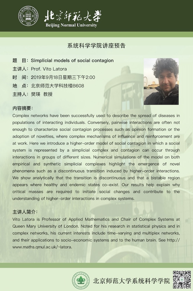[Lecture] Simplicial models of social contagion