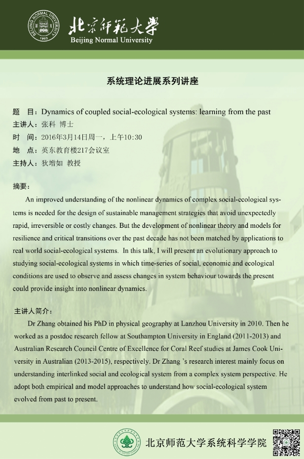 [Lecture] Dynamics of coupled social-ecological systems: learning from the past