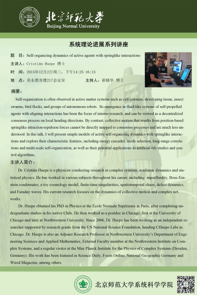 [Lecture] Self-organizing dynamics of active agents with springlike interactions
