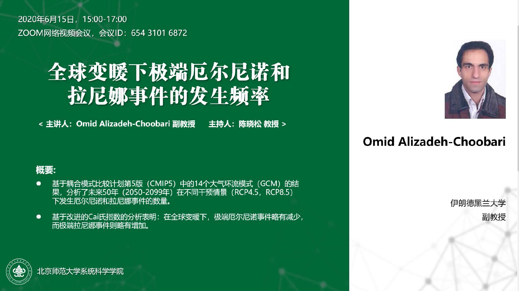 主讲人:Omid Alizadeh-Choobari