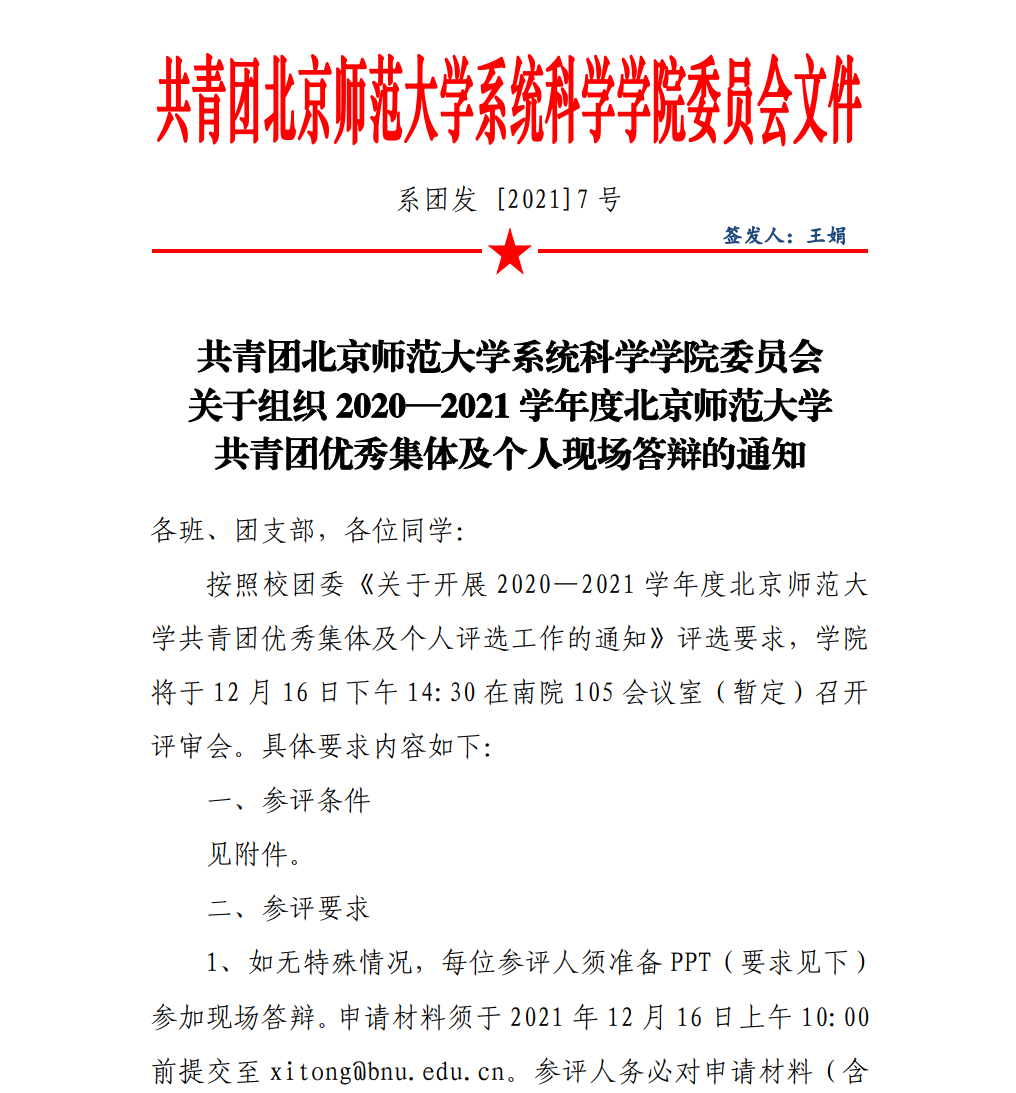 关于组织2020—2021学年度av影片直播 共青团优秀集体及个人现场答辩的通知