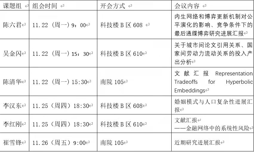 本周组会汇总信息如下:
