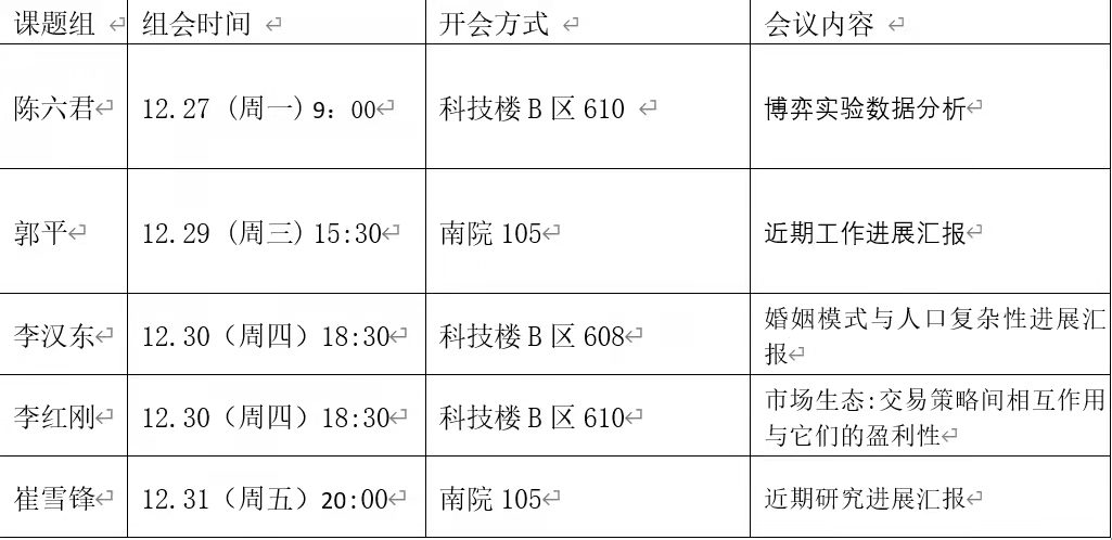 本周组会汇总信息如下: