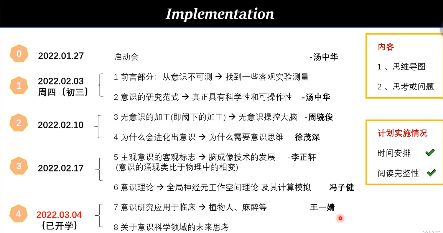 2月23日:汤中华分享前沿部分和“意识的研究范式”。