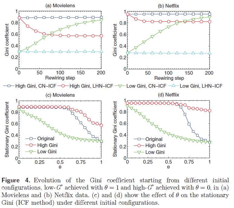 内容简介:我们在各种网站上常常接触并使用推荐系统。在我们享受它带来的便捷时,它也在潜移默化的影响着我们的选择习惯。前人对推荐系统的研究主要集中在如何提高推荐系统的精确性和多样性,而不同推荐系统在长期使用下会对商品形成如何的关注度分布尚不清楚。本文提出了一个基于用户-商品二分网的演化模型来研究推荐系统对用户选择行为的长期影响。虽然大家广泛认为推荐系统能为用户拓宽视野,结果显示在长期演化中用户的选择范围被推荐系统大大缩小。另外,本文还发现此模型能涌现出迟滞现象,使得推荐系统的这种不利效果很难通过自身恢复。最终,我们发现在演化早期牺牲推荐系统的少量推荐精度可以有效减弱它产生的这种长期不利影响。