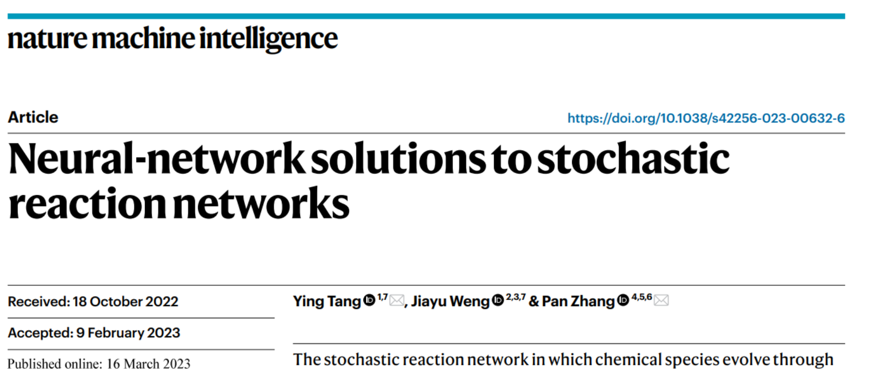 3月16日,av影片直播 系统科学学科,联合中科院理论物理所的合作者,在Nature Machine Intelligence(自然-机器智能)发表论文Neural-network solutions to stochastic reaction networks,提出了一种使用变分自回归网络来求解化学主方程的机器学习普适方法。