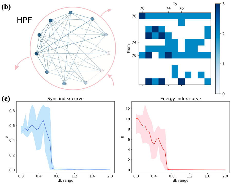 研究采用经典的Epileptor模型,构建异质性大规模脑网络系统,通过引入不同拓扑结构(Small-World、Scale-Free、Random网络),系统模拟癫痫的传播动力学。同时,特别引入了两个全局指标:同步性指标(S):衡量网络内癫痫发作的同步程度;能量指标(E):反映系统中癫痫活动的强度水平。结合Allen小鼠脑连接组图谱。进一步验证了该方法在真实生物连接数据上的适用性与有效性。