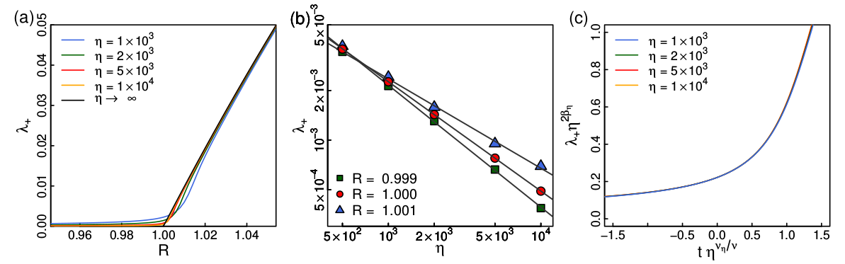 的直线,偏离临界点变为曲线。(c)