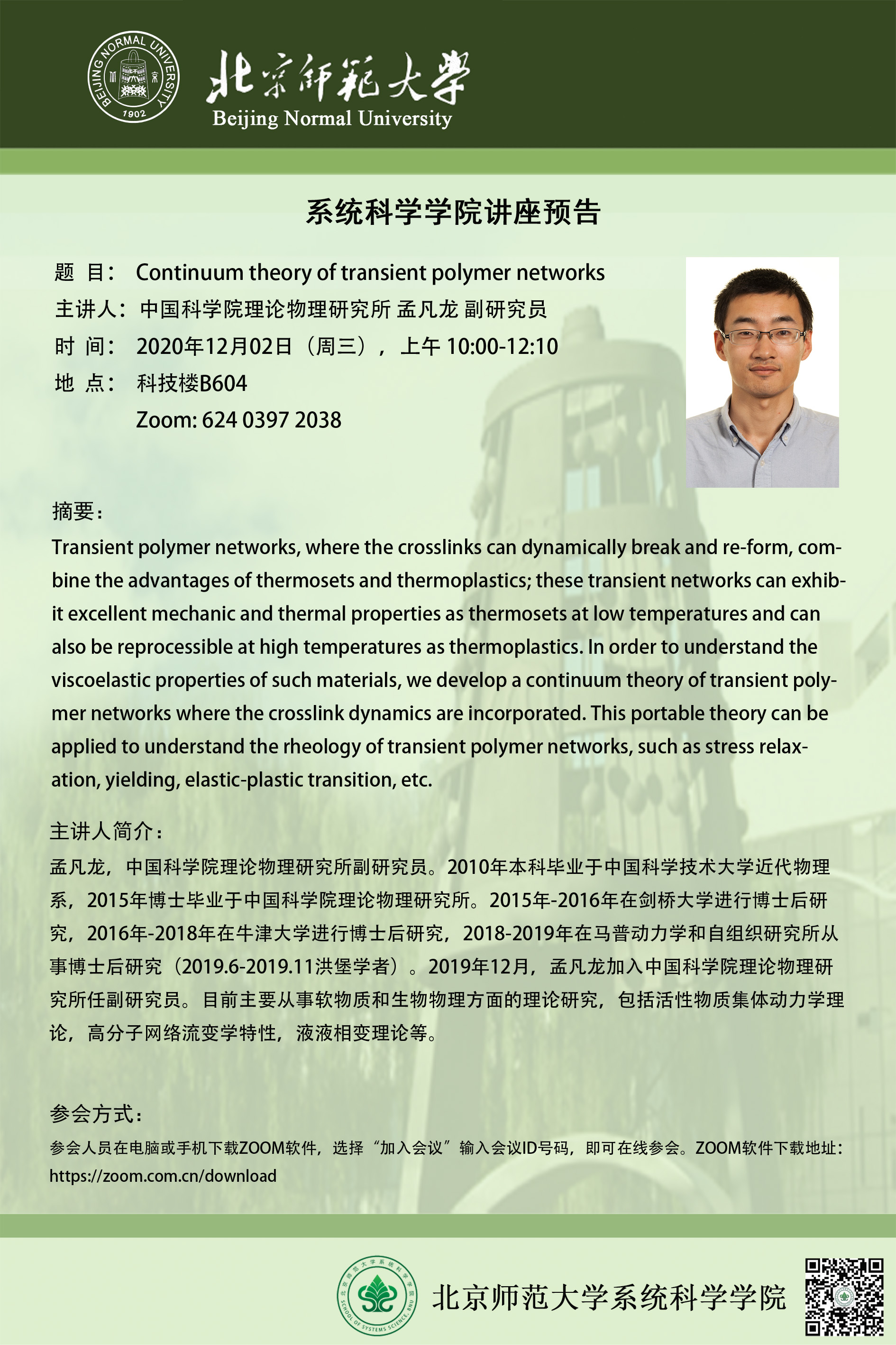 【讲座】Continuum theory of transient polymer networks