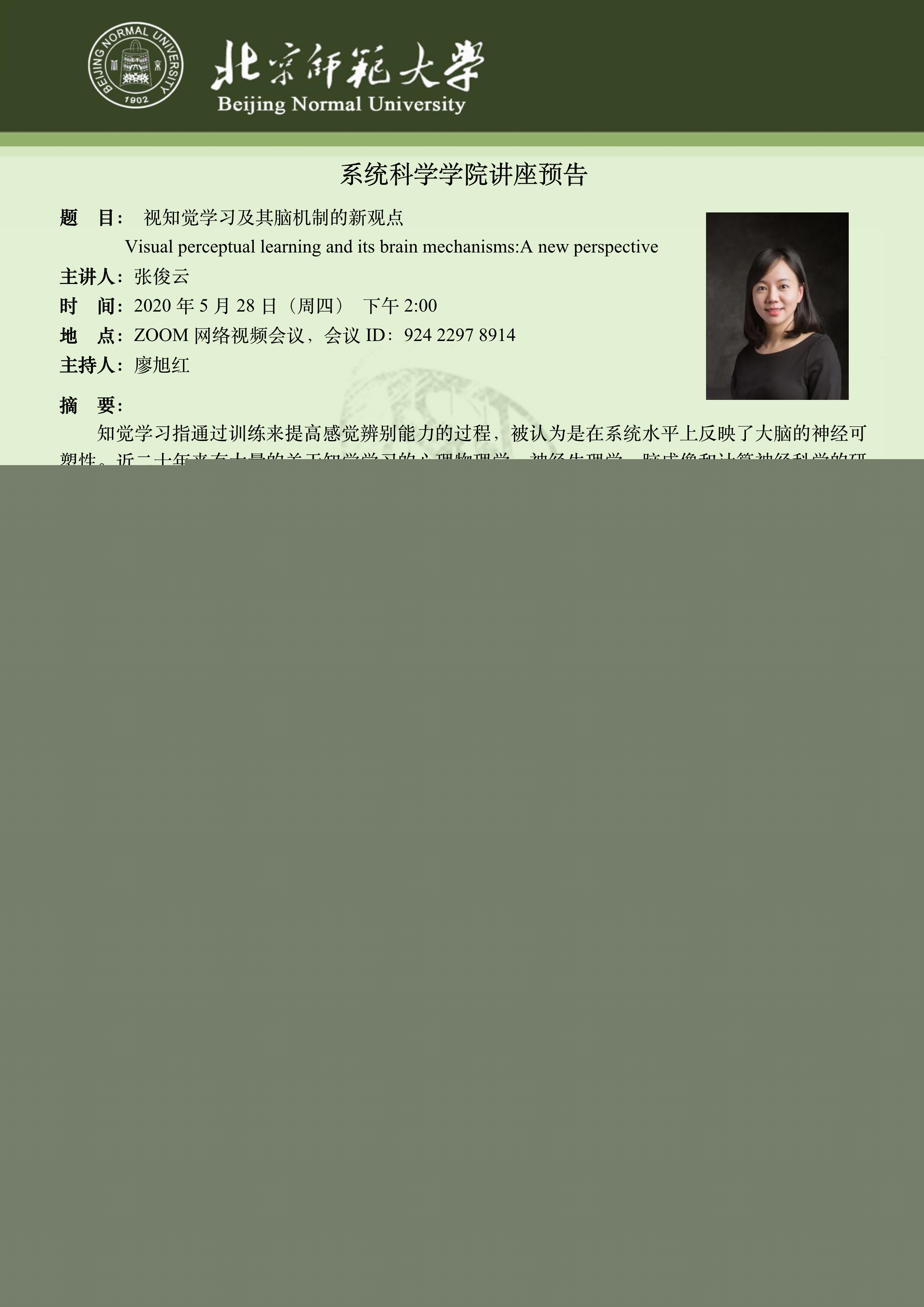 【讲座】视知觉学习及其脑机制的新观点