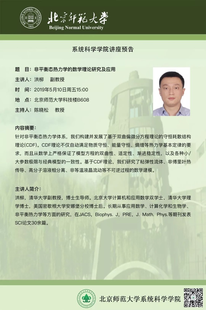 [讲座] 非平衡态热力学的数学理论研究及应用