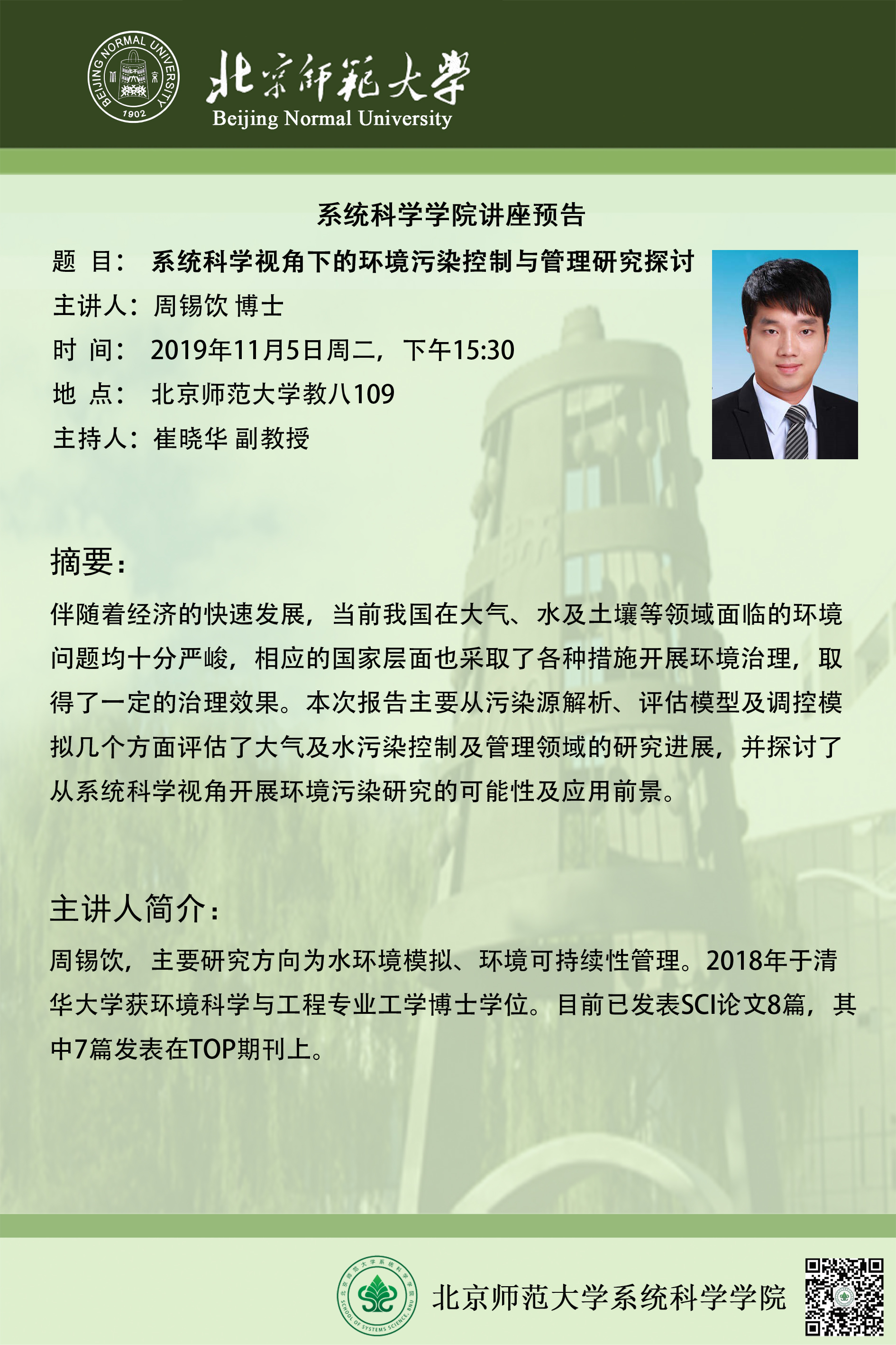 [讲座] 系统科学视角下的环境污染控制与管理研究探讨