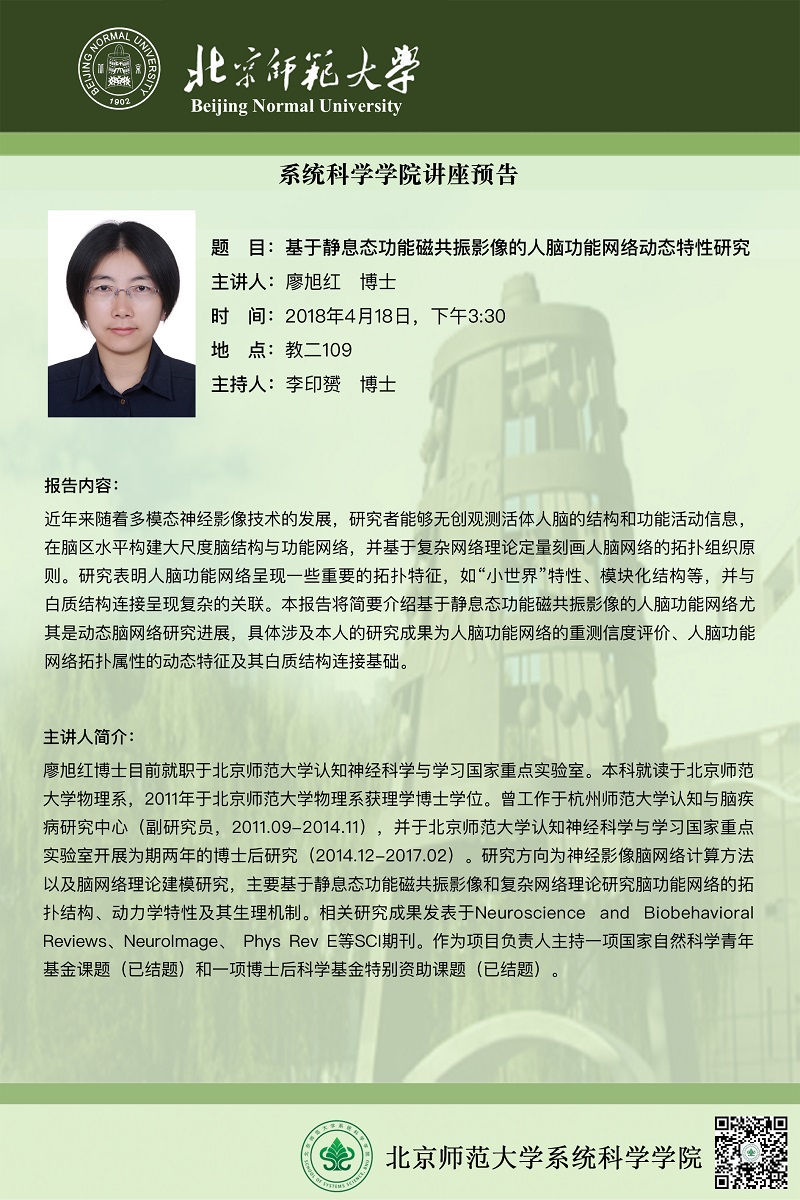 [讲座] 基于静息态功能磁共振影像的人脑功能网络动态特性研究