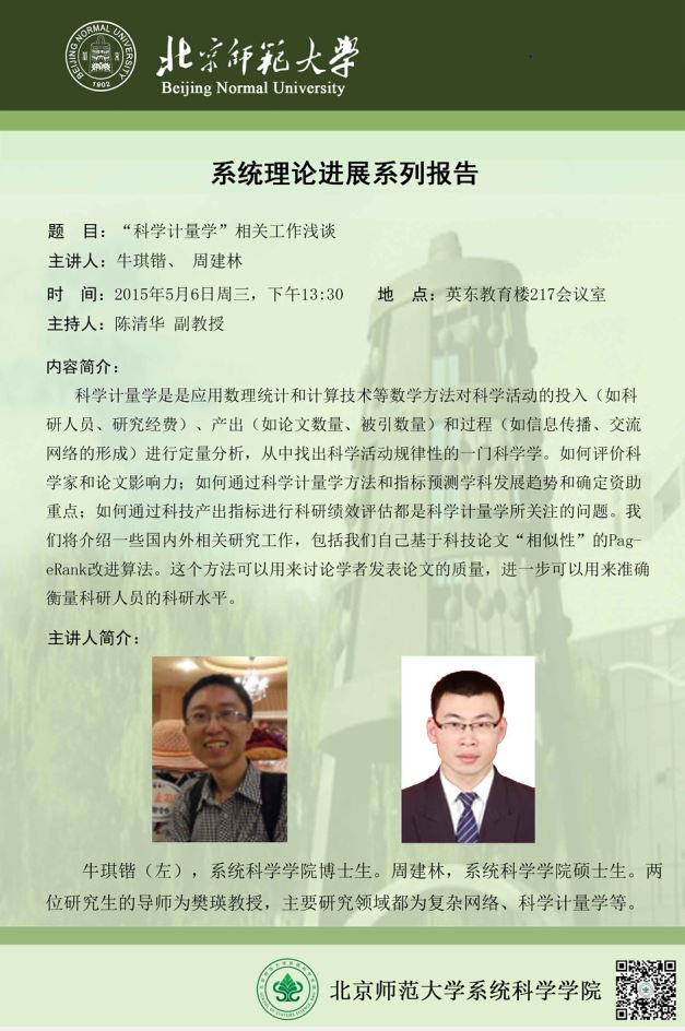 [讲座] “科学计量学”相关工作浅谈