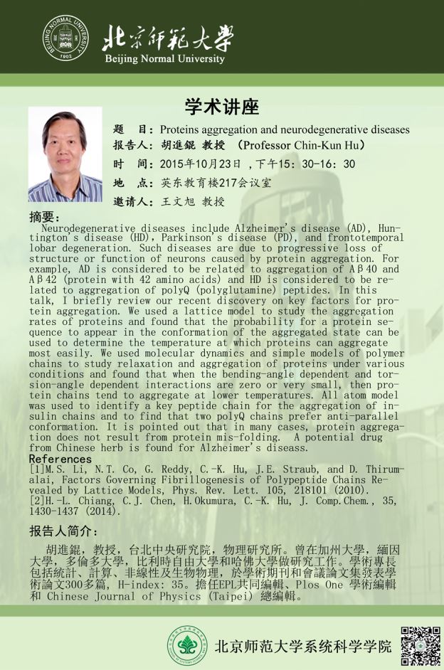 [讲座] Proteins Aggregation and Neurodegenerative Diseases