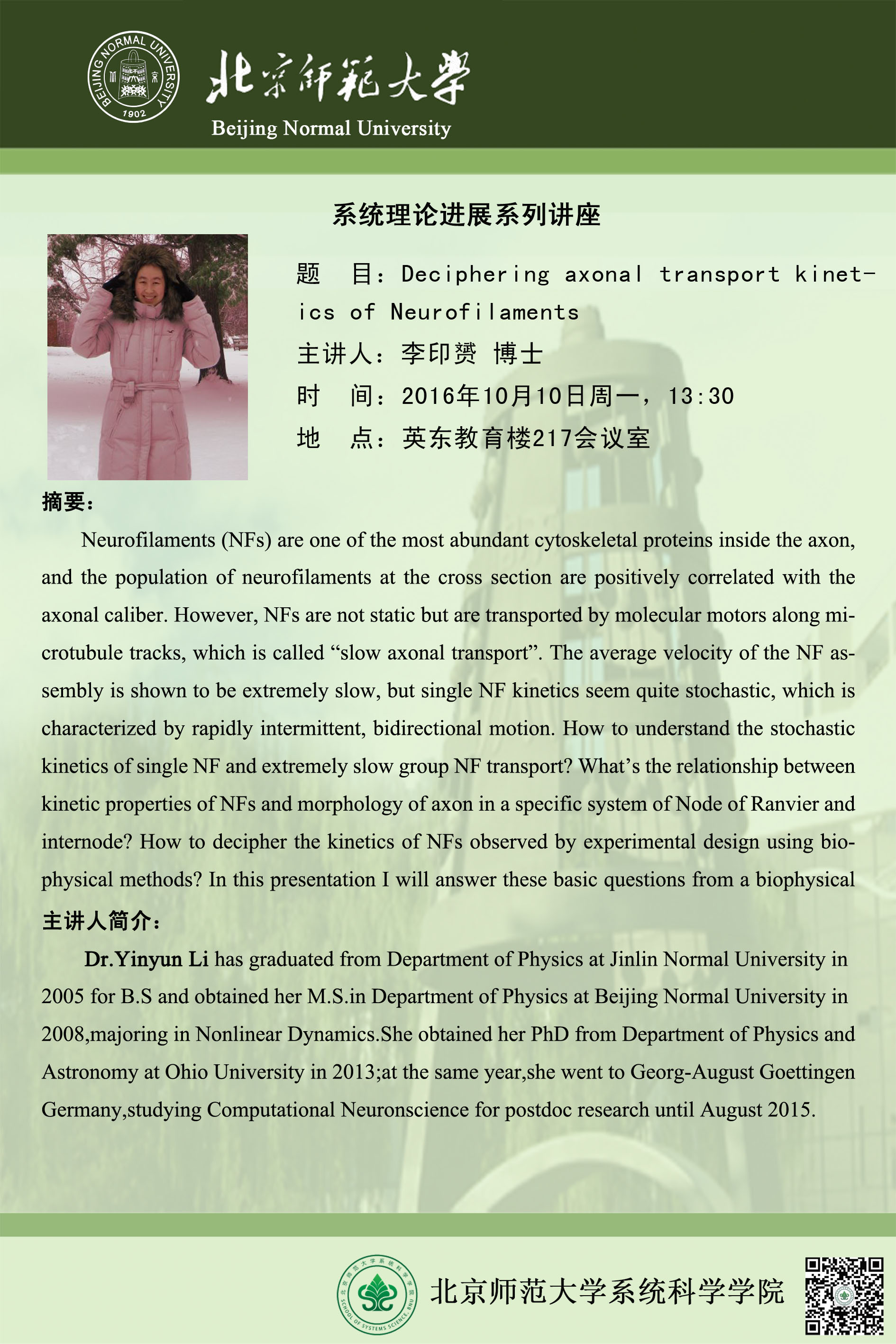 [讲座] Deciphering axonal transport kinetics of Neurofilaments
