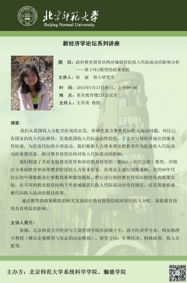 [讲座] 政府教育投资结构对城镇居民收入代际流动的影响分析