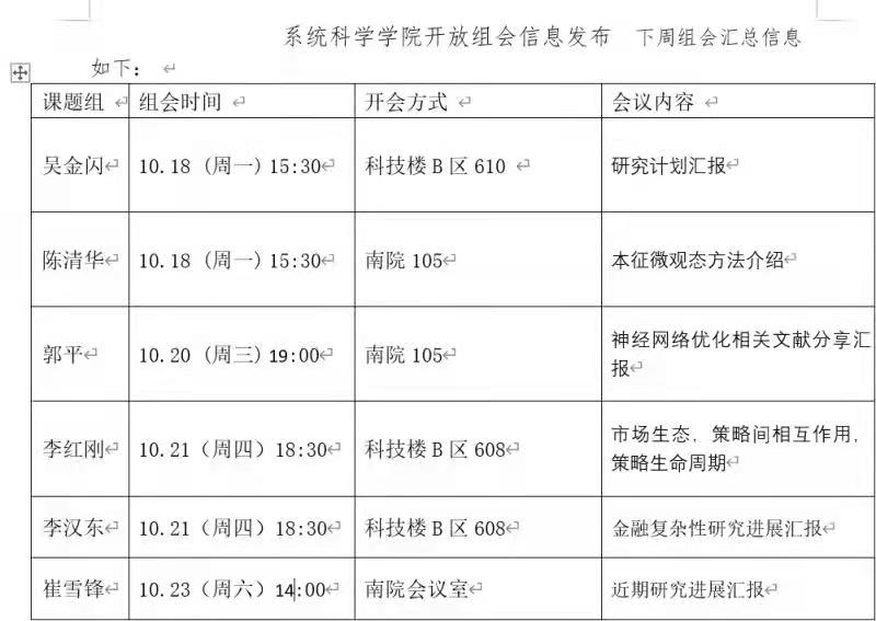 本周组会汇总信息如下: