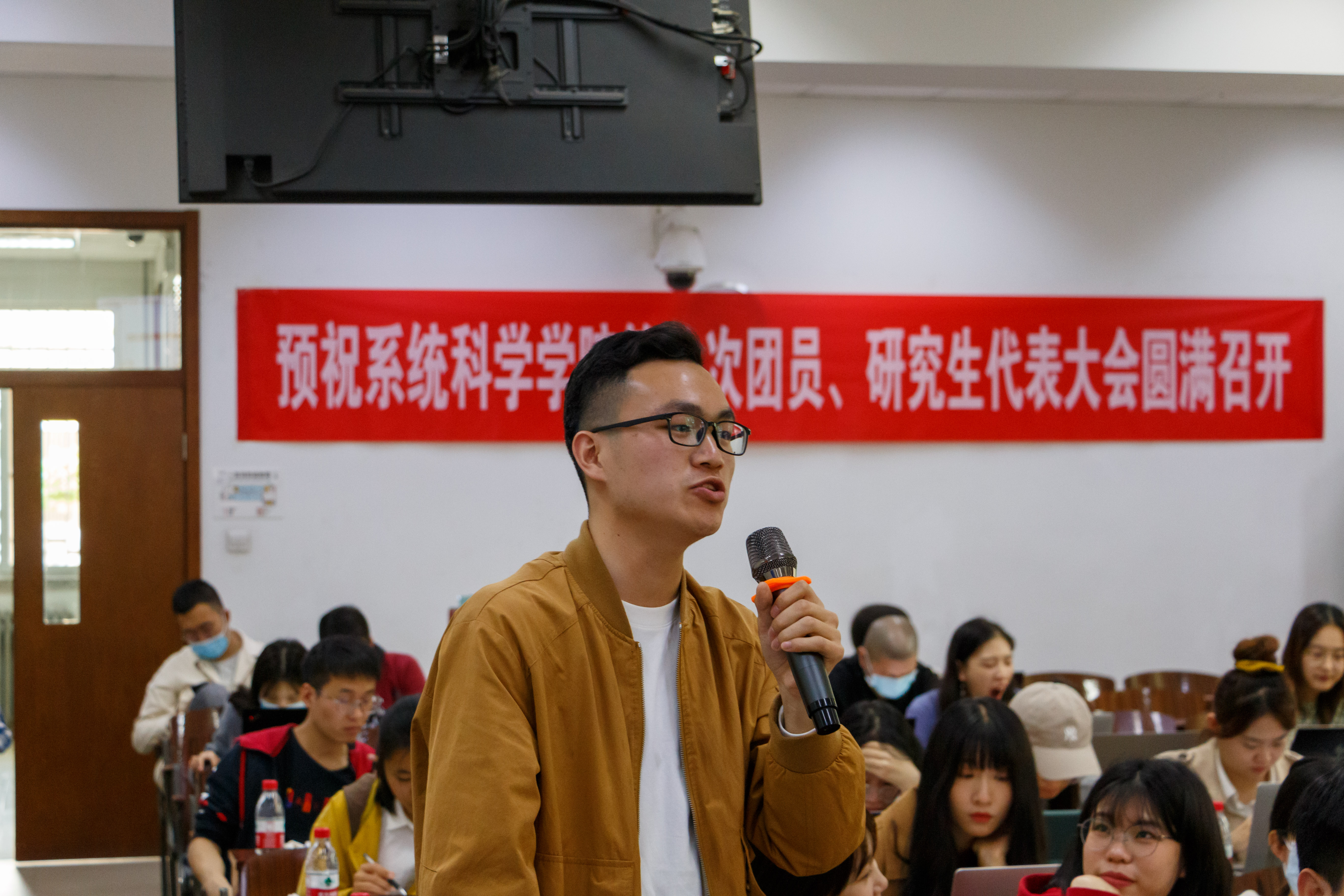 2021年4月25日,在电子楼106, av影片直播 成功召开了第八次团员、研究生代表大会。本次大会分预备会议和正式会议两部分。参会嘉宾分别为 av影片直播 党总支副书记兼副院长周亚、各班班主任(李小萌、武振伟、陈家伟、王娟、曾安、赵博、周锡饮)及兄弟院系(全球变化与地球系统科学研究院、历史学院、体育学院)学生会代表。参加本次会议的 av影片直播 学生代表共计82人。