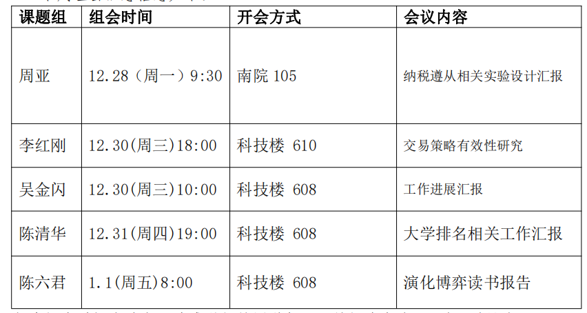 下周组会汇总信息如下: