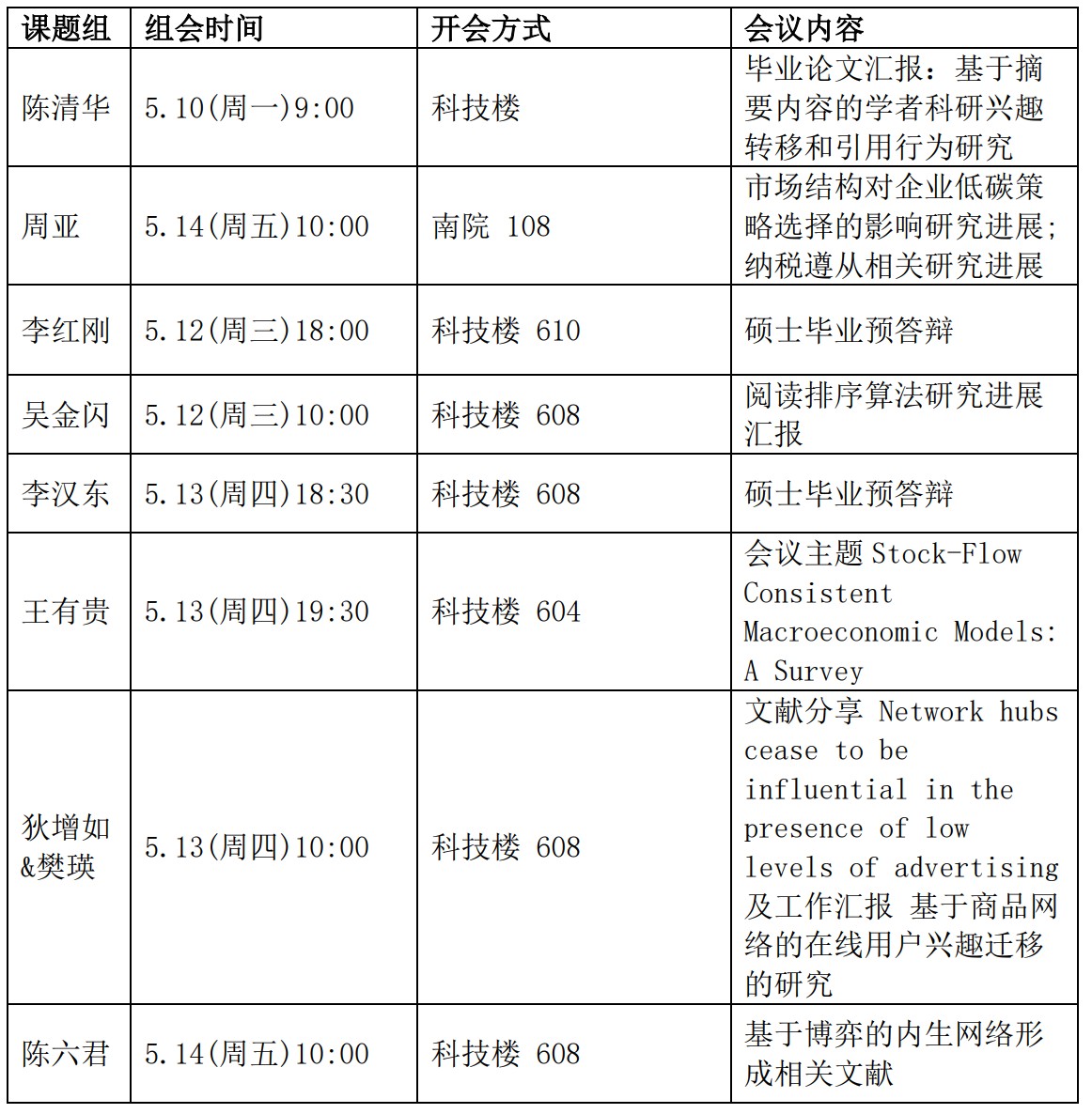 本周组会汇总信息如下: