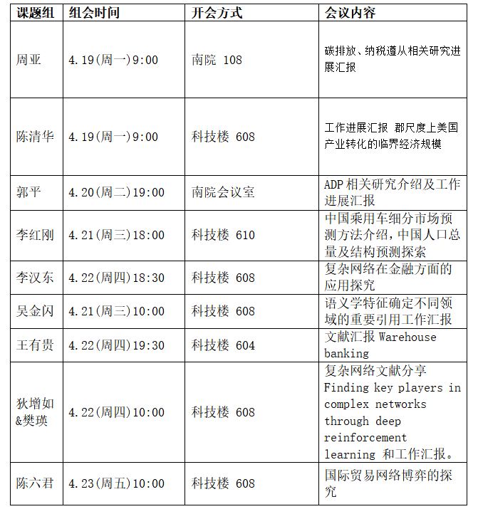 本周组会汇总信息如下: