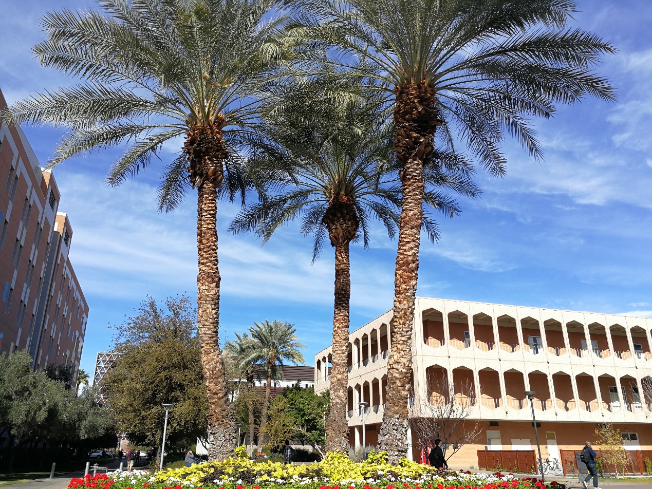 亚利桑那州地处美国的西南方,属热带气候,一月份温度也在10摄氏度到20摄氏度之间,气候十分怡人。巨大的仙人掌和椰子树随处可见,橘子树也作为景观树或是种在人家的院子里,或是作为行道数栽在道路两旁。