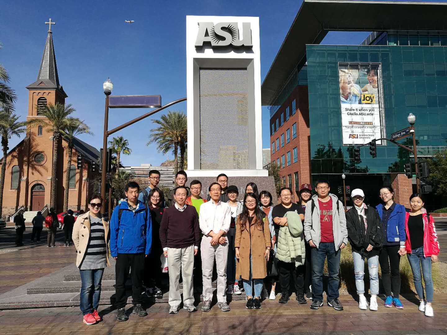 经过2天的短期痛苦的倒时差环节,同学们终于要“上学啦”!在第一天,老师和同学们与亚利桑那州立大学方面的联系人Sander教授进行了会面,Sander教授极其热情,并且帮助同学们联系了各自研究领域的专家,来帮助大家在科研方面获得更好的提升。同时,同学们还专门拜访了来颖诚教授,在此次访学中,来老师不仅为同学讲授课程,而且为同学们提供了实验室的座位。