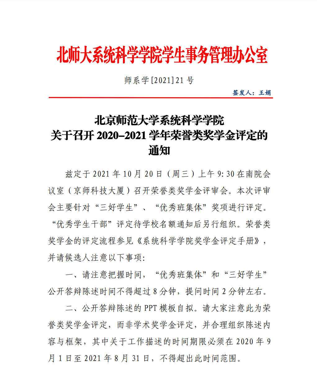 关于召开2020-2021学年荣誉类奖学金评定的通知