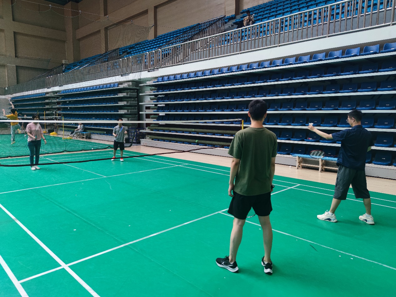 同学们两两组成队伍轮流进行双打,为确保各队强度接近多是男生-女生的组合。尤其研一同学参与积极性很高。