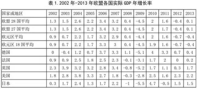 因此,基于以上理论,我猜想一个封闭的收缩型社会的经济增长率是跟人口增长率更高度相关的。罗马俱乐部1972年出版了《增长的极限》,他们提出资源环境的制约会导致经济增长的极限。我认为,人口收缩型社会,也会面临增长的极限。当然这里的极限并不意味着经济完全不增长,但意味着经济增长率处于低速态(也不排除经济负增长),而且这些增长更多的有可能是技术的随机进步、世界经济的协同影响等因素导致的。过去学术界常从要素生产力的边际递减来解释世界发达经济体经济趋缓,但实际上人口这个因素在里面应该起了更重要的因素。实际的例证,让我们再回头看看日本的战后经济增长率。日本在其劳动人口绝对下降的1990年以后GDP增长率平滑值基本就没有超过2%,这与人口爆炸的上世纪60年代两位数的增长率不可同日而语。同样,进入收缩型社会的欧洲经济增长率也是在低速区徘徊(见表1)。