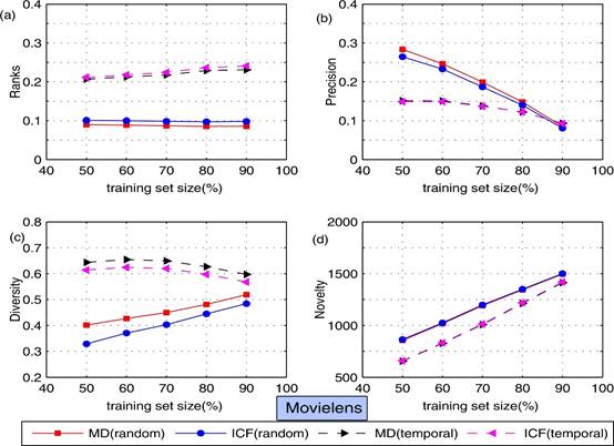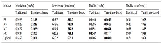 Table 1. Comparison of the traditional and timeliness-based recommendation algorithms in Movielens and Netflix data sets. For the ranks metrics, the smaller the better, while, regarding the timeliness metric, the higher the better. The algorithm with better performance is highlighted in bold font.