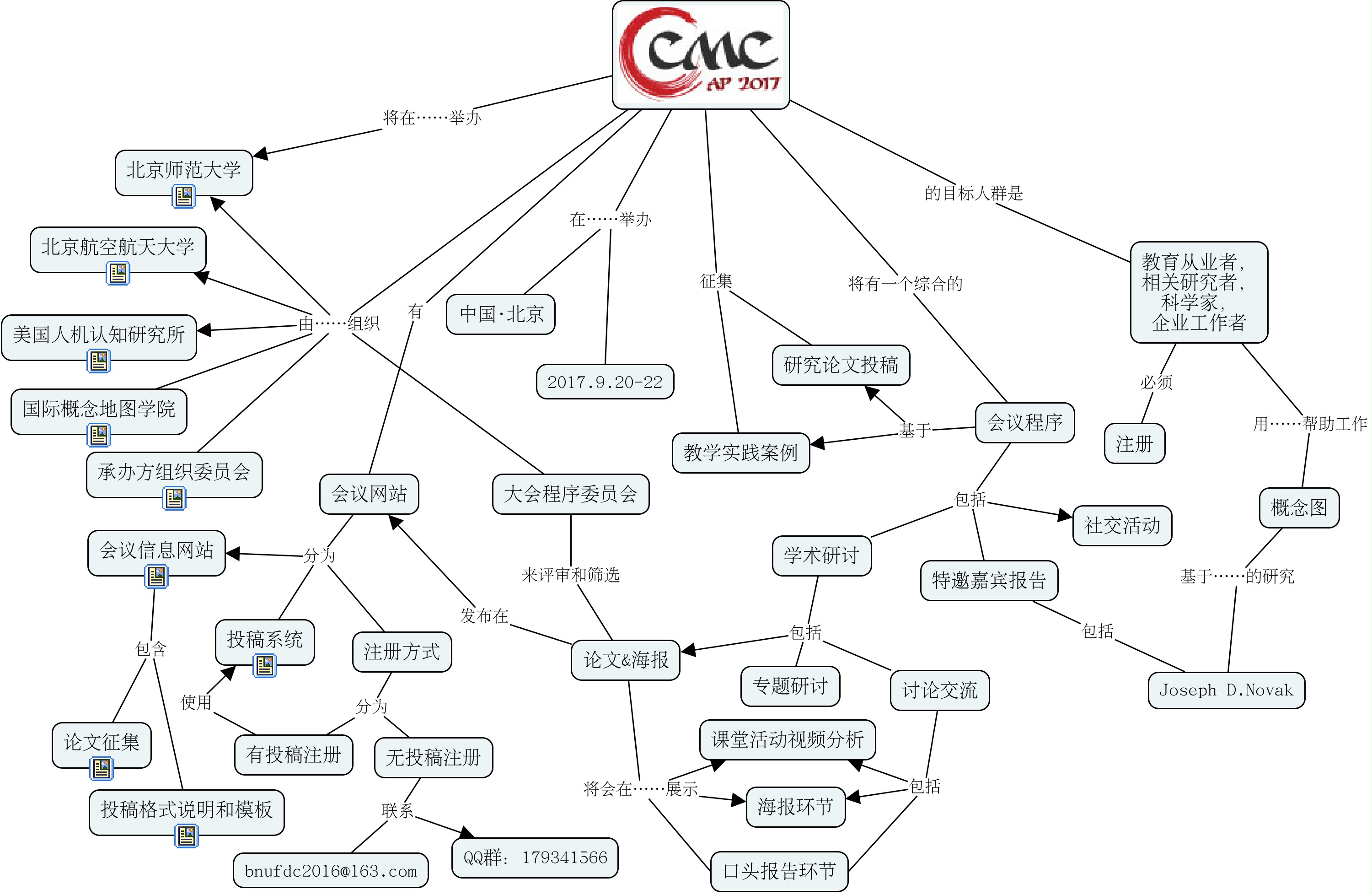 此前,在潘普洛纳(西班牙)、圣何塞(哥斯达黎加)、塔林(爱沙尼亚)/赫尔辛基(芬兰)、比尼亚德尔马尔(智利)、瓦莱塔(马耳他)、桑托斯(巴西)和塔林(爱沙尼亚)已成功举办了七届国际概念图大会,大会将来自世界各地的学者和对概念图感兴趣人都聚集在一起。考虑到亚太地区最近用户数量的不断增加,首届亚太概念地图会议也被视为第七届国际概念地图会议的区域延伸。这将是另一个给所有概念图使用者和研究人员分享想法的平台,特别是针对亚太地区。本次会议由av影片直播 、北京航空航天大学和美国人机认知研究所联合组织。 (点击下面链接,可以查看对应的学术计划和论文:cmc2004,cmc2006,cmc2008和cmc2010,cmc2012,cmc2014和cmc2016。所有会议录可以从CMC会议记录页面下载)。