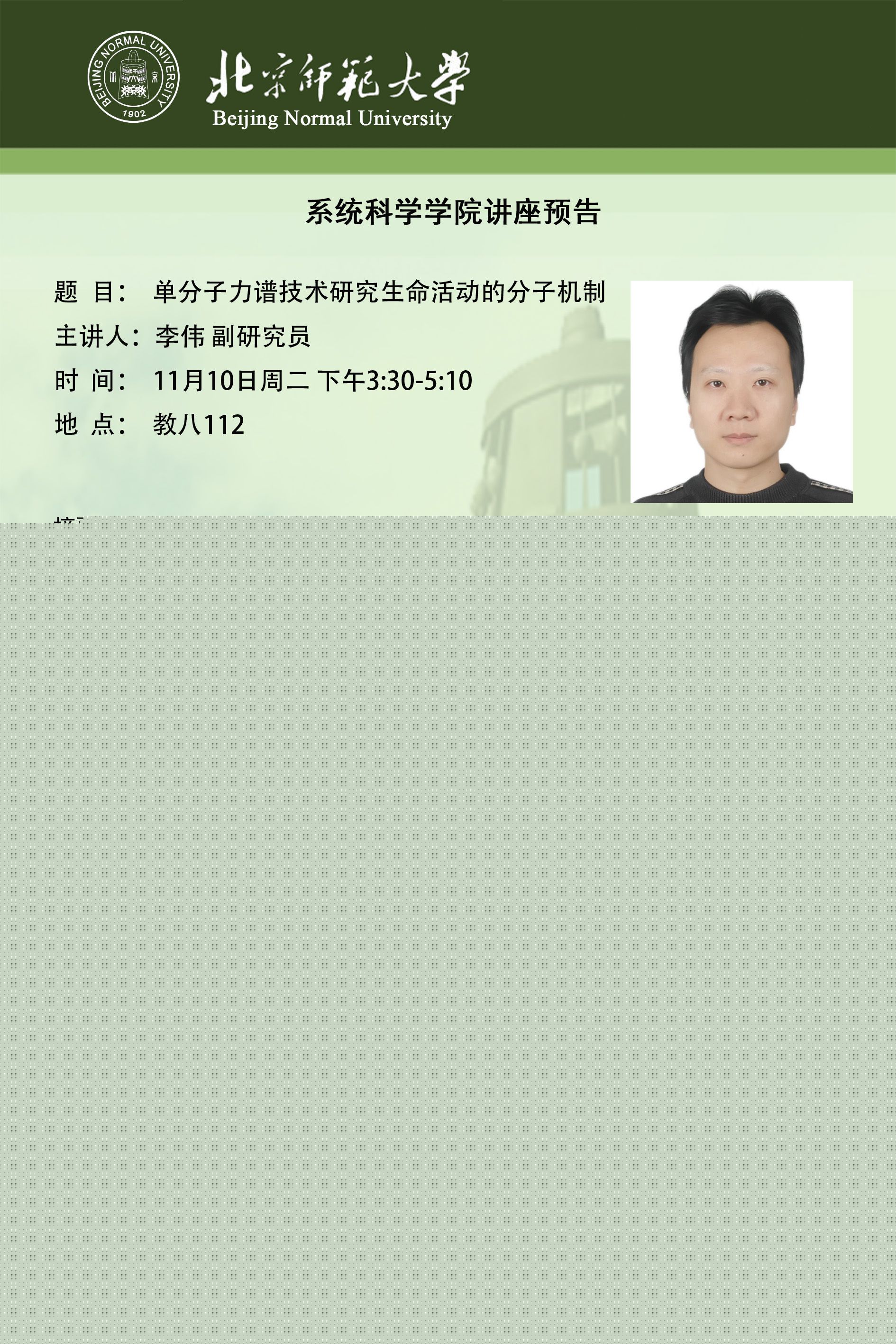 【讲座】单分子力谱技术研究生命活动的分子机制