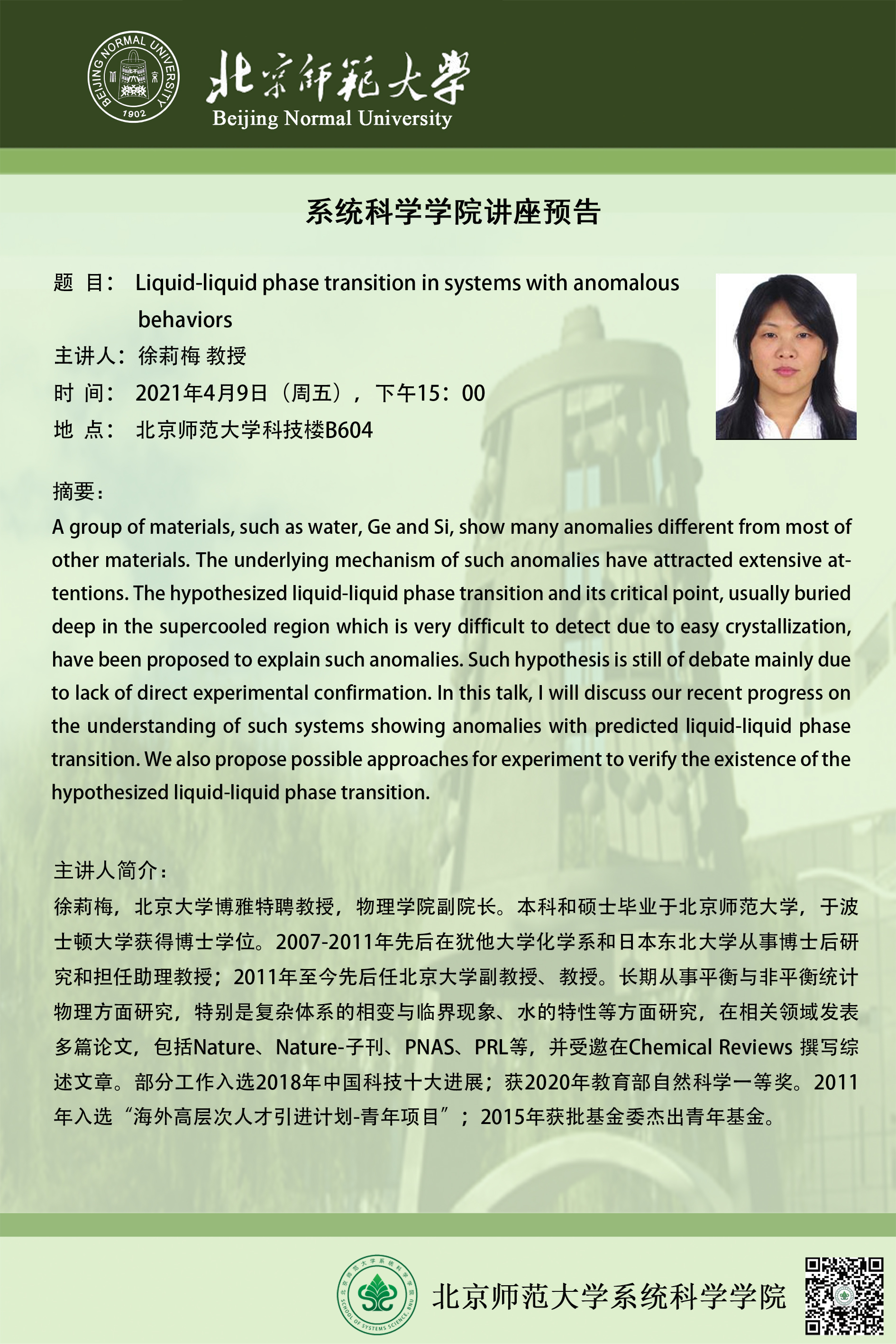 【讲座】Liquid-liquid phase transition in systems with anomalous behaviors