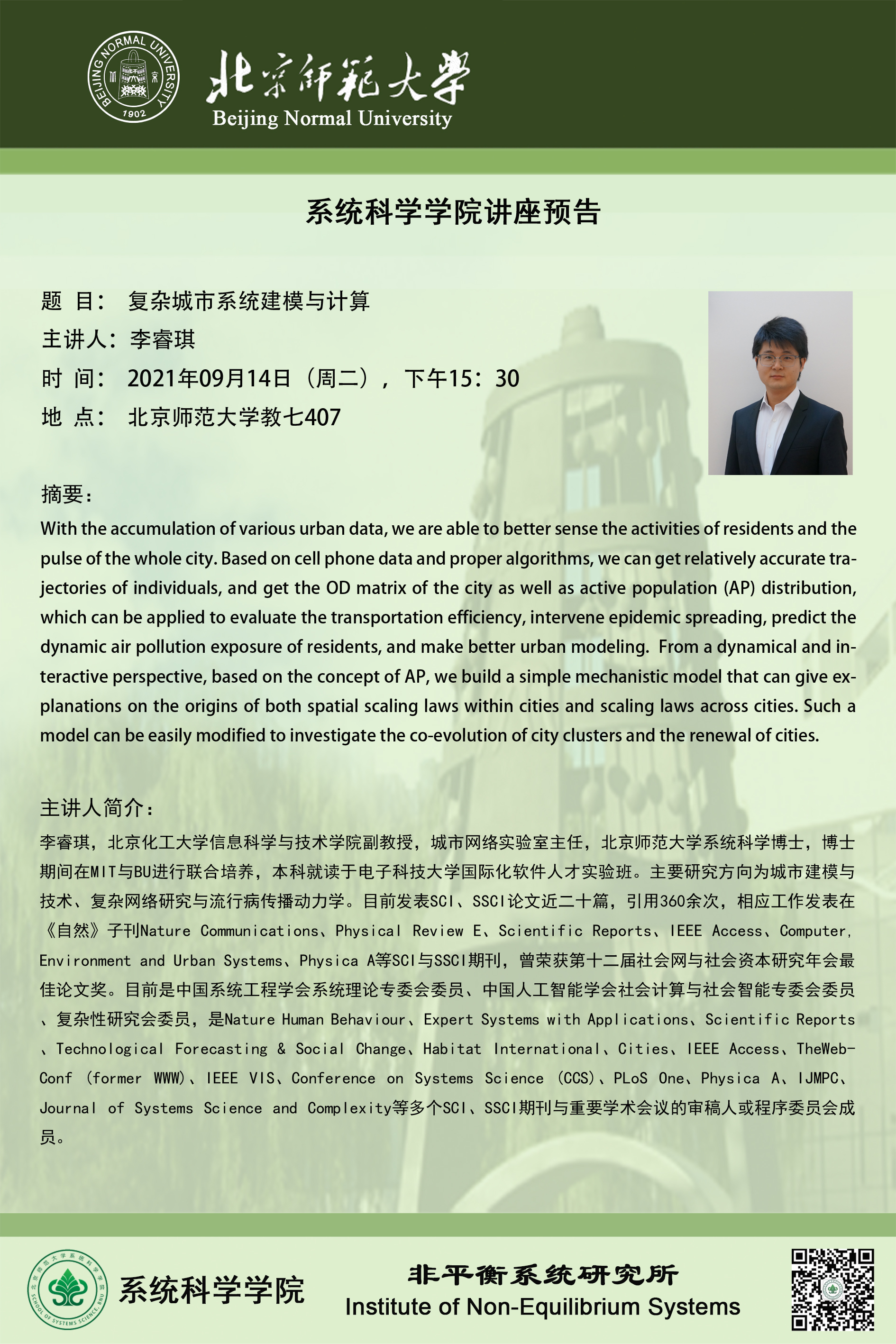 【讲座】复杂城市系统建模与计算