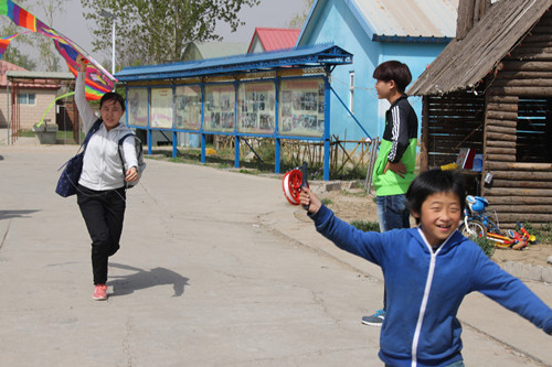 饭后,同学们和太阳村的孩子们一起放飞筝,希望孩子们能够像风筝一样自由飞翔、越飞越高。为了不打扰他们的午休,同学们自己先开始放风筝以吸引孩子们的注意。刚开始只有一两个孩子跑过来跟我们一起放风筝,渐渐地想要放风筝的孩子越来越多。有些孩子第一次放风筝,同学们则耐心地教他们放风筝的技巧;当风筝不小心挂在小树上,同学们就小心翼翼地帮忙取下风筝;当没有风的时候,同学们和孩子们就一起奔跑;当线缠绕在一起的时候,同学们就耐心地帮忙解开。在放风筝时,每个孩子脸上都洋溢着笑容,也和“哥哥姐姐”们越来越亲密。最后同学们都积极购买太阳村种植的草莓以及盆栽以支持太阳村的发展。