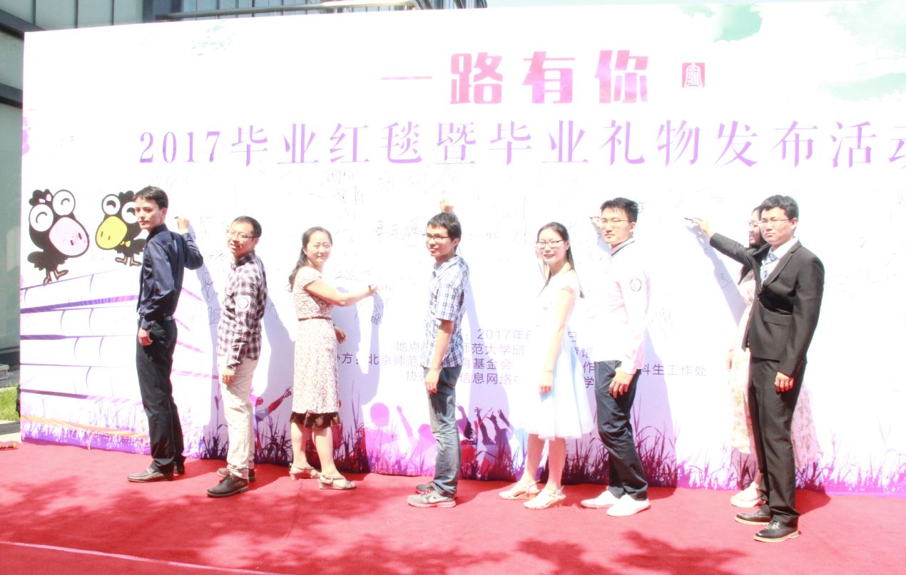 6月20日上午,av影片直播 教育基金会为师大毕业学子特别奉献的一场毕业季大礼-红毯暨毕业礼物发布活动在邱季端体院馆北门举行。 av影片直播 2017届研究生毕业生代表及老师代表共8人身着盛装参与本次活动,毕业生们走上红毯,充分展现自己的青春风采和光芒,也为最后的校园时光画上圆满的句号。在现场开展小额捐赠活动及向毕业生们派发专属他们的毕业礼物活动中,部分毕业生代表领去了纪念品,在母校留下最珍贵、最美好的回忆。