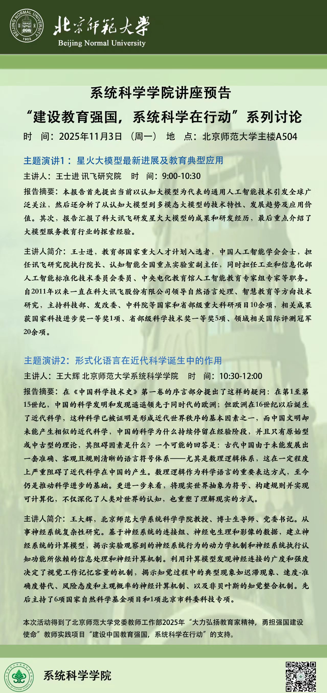 本次活动得到了av影片直播 党委教师工作部2025年“大力弘扬教育家精神,勇担强国建设使命”教师实践项目“建设中国教育强国,系统科学在行动”的支持。