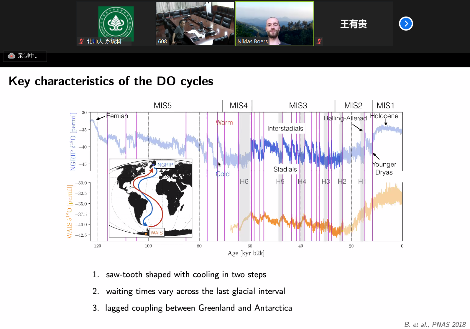 2020年6月22日下午, av影片直播 邀请柏林洪堡大学理论物理学博士Niklas Boers为全院师生进行了主题为“Abrupt transitions in climate dynamics(气候动力学的突变)”的线上讲座。讲座由 av影片直播 院长陈晓松教授主持,科技楼B区608会议室作为线下会场开放,线上线下全院师生及外院研究人员50余人参与了讲座。
