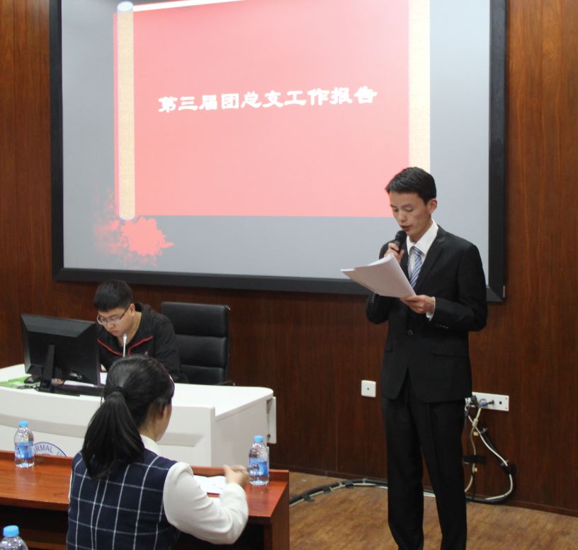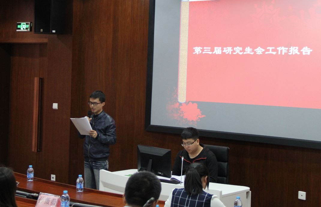 李小萌老师代表大会筹备委员会作了工作汇报,介绍了本次会议的筹备历程、各年级代表的推选情况以及候选人的资格审核结果。随后,学院团总支书记曾凡齐同学和研究生会主席徐翊焜同学分别代表第三届团总支委员会和研究生会主席团做一年的工作总结,他们在报告中回顾了第三届团总支和研究生会班子成立以来开展的各项工作。经过一年的努力, av影片直播 学生组织在制度建设、活动开展、服务师生等方面取得了良好的成绩,在秉承 av影片直播 学生工作的优良传统的基础上,创新了活动形式,结合学科特色努力为全院师生特色营造良好的学术氛围,也为普及、宣传系统科学贡献了自己的一份力量。接着,余柳涛同学代表师生文体联谊会做工作报告,他回顾了一年来学院师生文体联谊会下设的“羽毛球社”、“足球社”、“电影社”和“棋牌社”开展的各项文体活动,总结了目前工作中的困难和不足,也向各位代表汇报了未来工作计划。