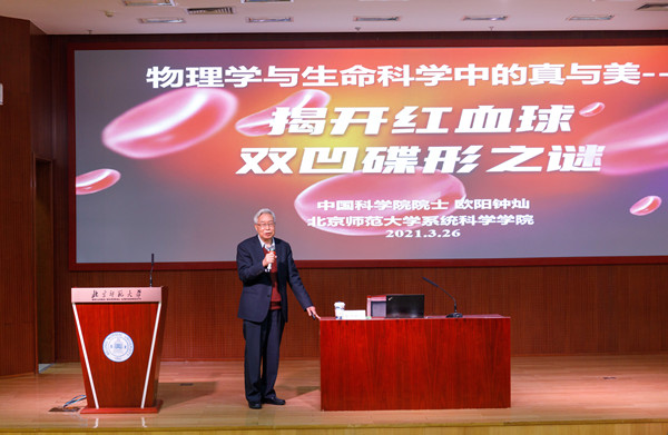 2021年3月26日,系统科学高端讲坛第一讲在av影片直播 京师学堂京师厅举行。第一讲的主讲嘉宾是中国科学院院士欧阳钟灿教授,讲坛主题是 “揭开红血球双凹碟形之谜”。本次讲坛活动由 av影片直播 院长陈晓松教授主持,线下线上同步进行,除了av影片直播 师生积极参加,兄弟院校的四十余人线上参加了讲坛活动。