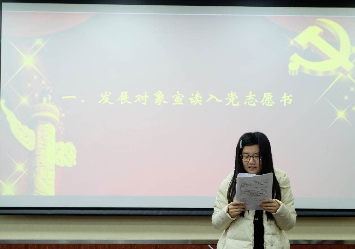 吴珺宣读入党志愿书