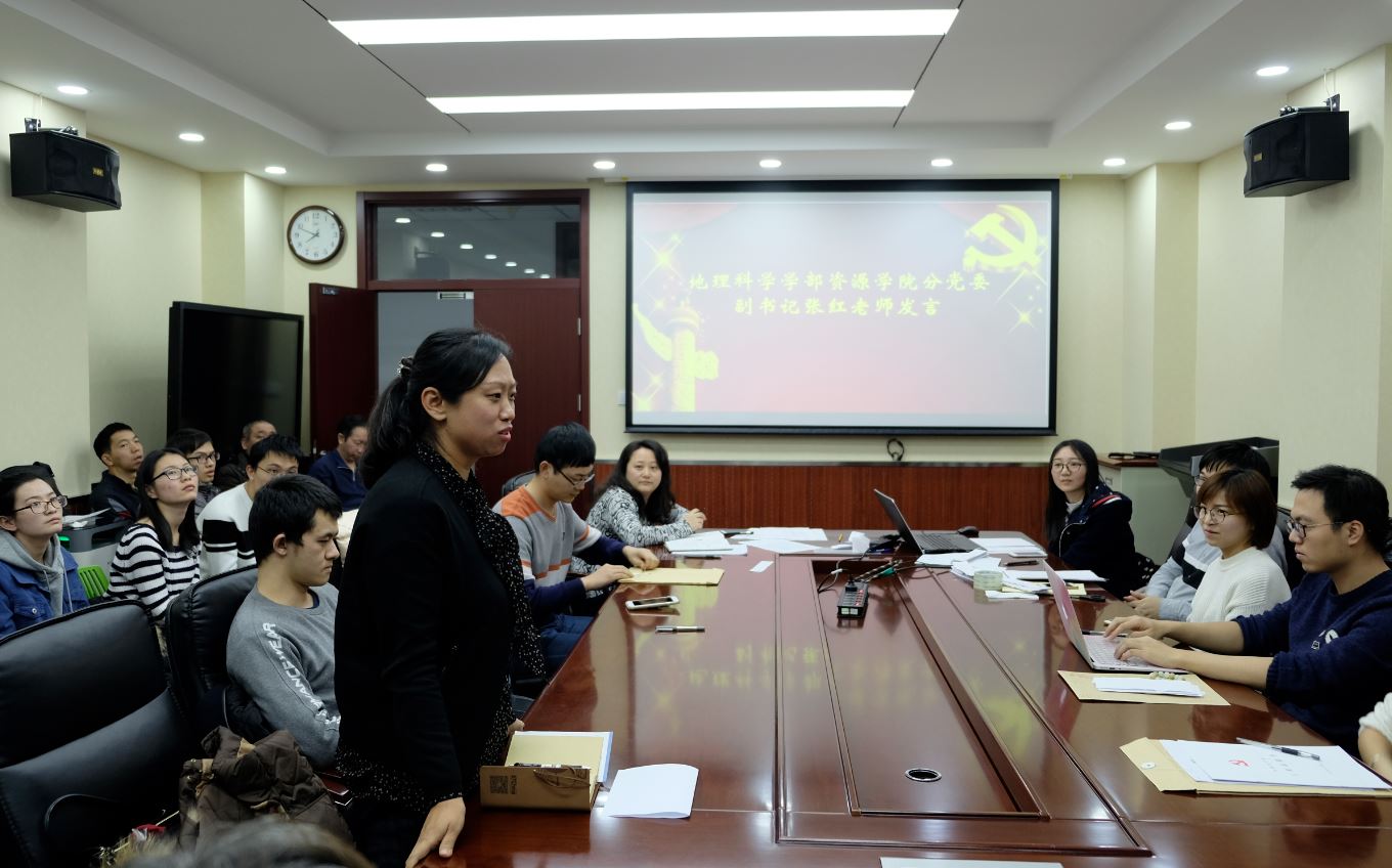 随后,新预备党员发表感想,他们表示,成为预备党员后,将会按照一名合格党员的标准严格要求自己,在科研、工作等各个方面都比以前更加努力,争取成为一名为大家服务、为党贡献的合格党员。最后,地理科学学部资源学院分党委副书记张红老师首先对本次会议进行了总结,提出“初心不忘,初心为民,初心力行”,希望与会的同志共勉,另外张红老师提出了一些党会召开的建议,并表示希望学院支部之间能开展共建,共同发展。然后, av影片直播 直属党支部统战委员狄增如老师对本次会议做最后总结,针对如何让组织具有战斗力的问题,狄老师对党员同志们提出 “要成为一名先进的人”,“要成为一名有政治追求和组织观念的人”,“要成为一个有思想的人”这三点要求,并且希望党员同志们都能尽力做到。