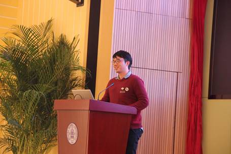 16:00茶歇结束后,周锡饮博士做了题为“基于人—水耦合系统的水环境综合管理研究”的报告。他从环境学的角度结合复杂系统的思想,建立了水环境承载力调控模型,并具体讲述了未来可研究、改进的方向。