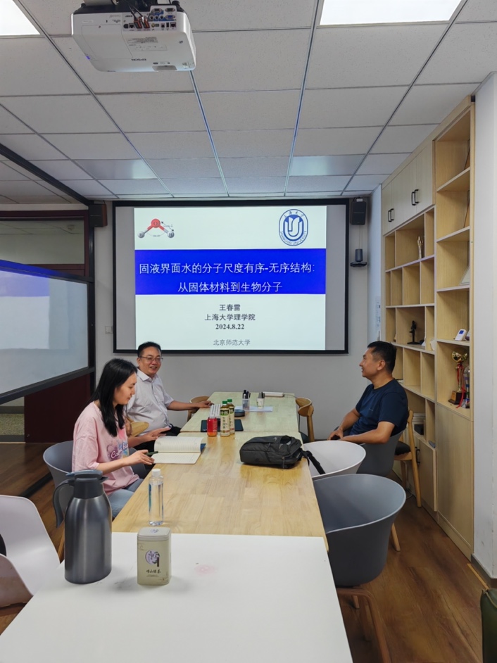 2024年8月22日,上海大学理学院的王春雷研究员在 av影片直播 作了一场题为《固液界面水的分子尺度有序-无序结构对界面性质影响》的专题报告。王春雷研究员是界面水分子研究领域的专家,他的到访为 av影片直播 师生提供了一个难得的学习和交流机会。在这次报告中,他和各位同学老师分享了最新的研究成果。