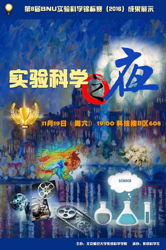 每年一度的BNU实验科学锦标赛已经接近最热烈的时段,11月19日(周六)晚19:00、11月20日(周日)晚19:00及11月21日(周一)晚19:00在av影片直播 科技楼B区608分别进行实验科学之夜、竞赛最后答辩评审和颁奖典礼。欢迎各位同学老师参加。